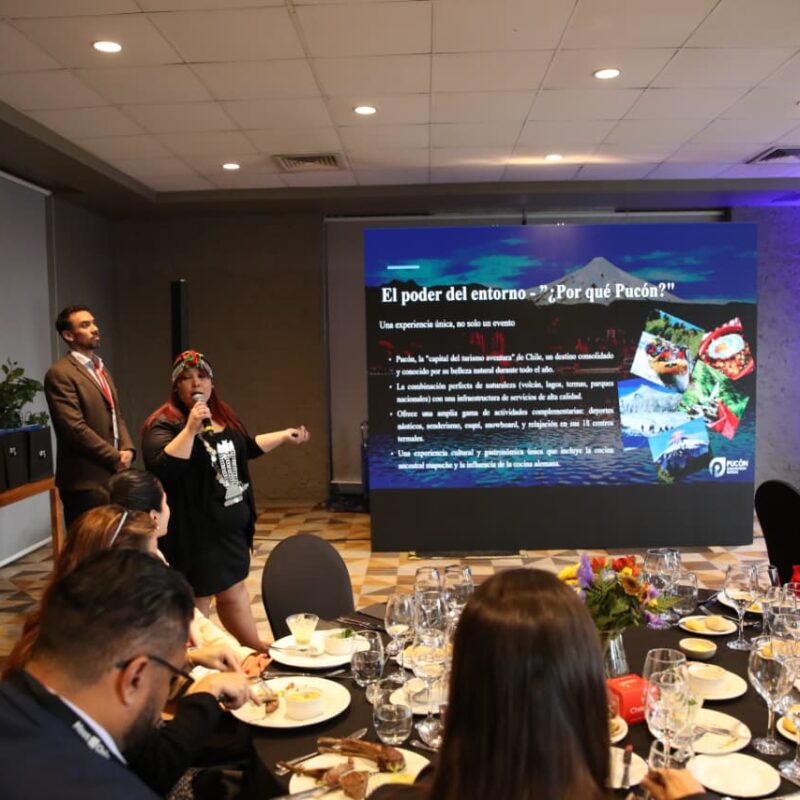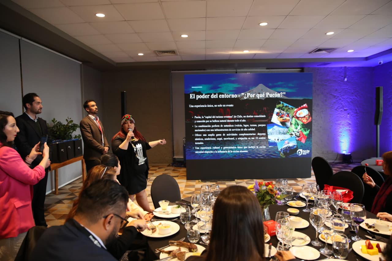 En este contexto, Pucón tuvo un rol protagónico con una presentación especial el viernes 29 de agosto, durante un almuerzo que reunió tanto a los compradores internacionales como a la industria asociada al turismo MICE en Santiago. En la ocasión, se destacó la variada oferta de servicios turísticos de primer nivel, la seguridad del destino y su oferta la riqueza cultural y gastronómica de la zona, y los imponentes paisajes naturales encabezados por el volcán Villarrica, uno de los más activos de Sudamérica.